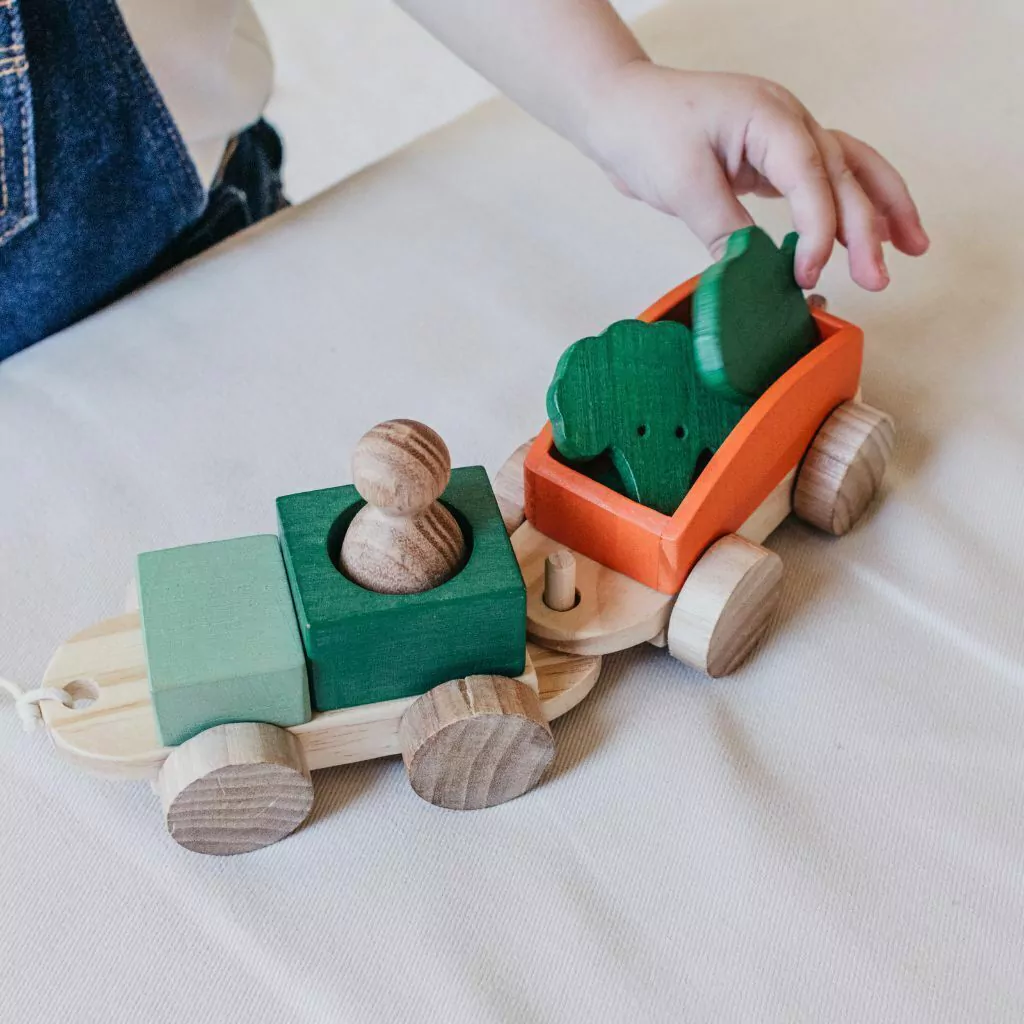 Um brinquedo clássico com design moderno, para brincar de encaixar, transportar e puxar.