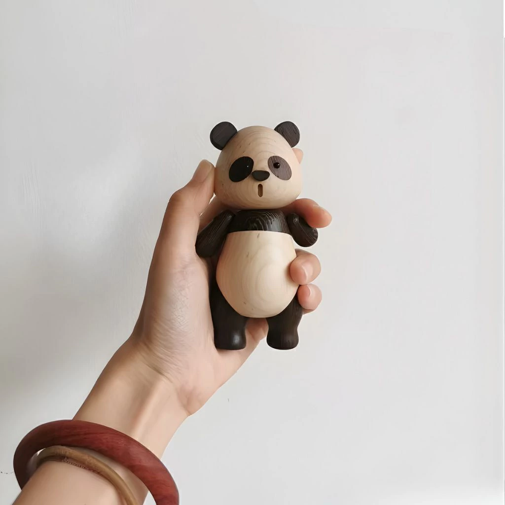 Panda feito artesanalmente em madeira natural wengue, perfeito para a decoração de qualquer ambiente. Possui braços e pernas articulados.