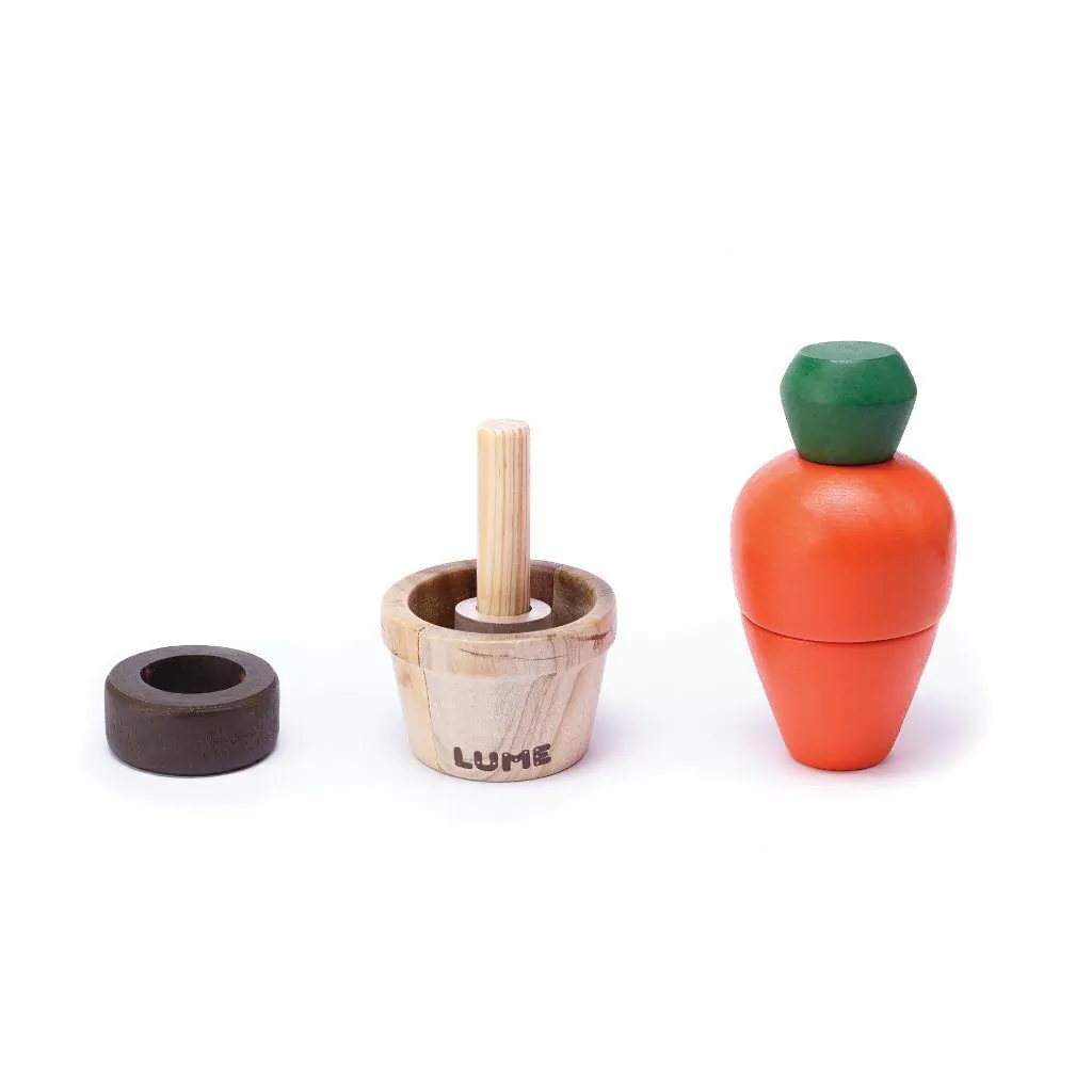 Contém: 1 vaso, 1 terra e 3 blocos que formam uma cenoura.