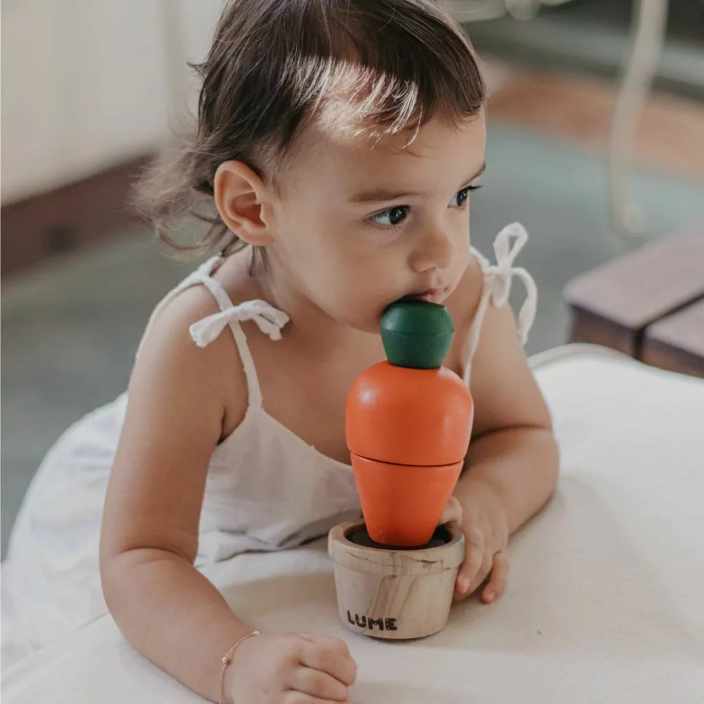Um brinquedo em formato de cenoura, um alimento que as crianças adoram!
